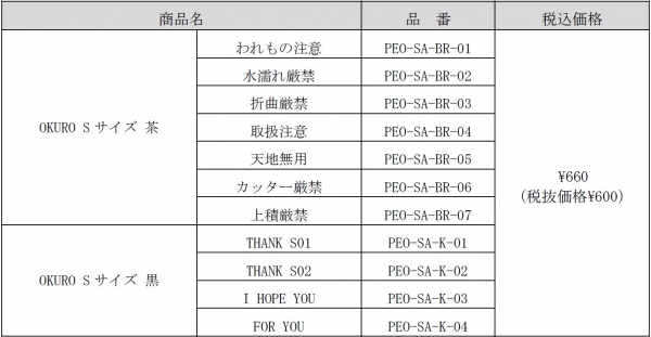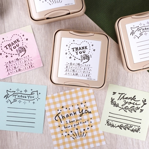 ネットショップの利用が増加する中、一般の方も梱包をする機会が増え、利用者の多くが梱包のやり方について気にしています。このような背景を踏まえ、おくり物に添えるちょっとしたメッセージやケアマークをポンポン押すことができるスタンプ「OKURO」を発売します。サイズは用途に応じて3サイズ。印面は、メッセージタイプとケアマークタイプの2種類をご用意しました。シヤチハタの「OKURO」なら、誰でも、可愛く、簡単に、受け取り手へ気持ちを届けることができます。