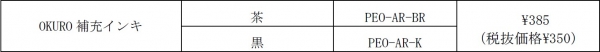 ※OKURO 補充インキ 茶・黒 各¥385(税込価格)