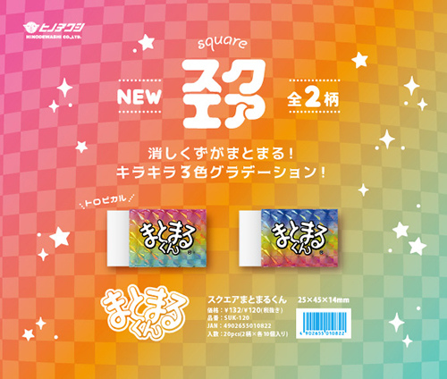 「スクエアまとまるくん」は、けしくずがまとまる消しゴム「まとまるくん」3色グラデーションが新鮮なスクエアの新デザイン。