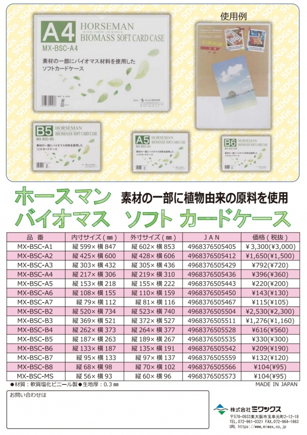 株式会社ミワックスは、素材の一部に植物由来の原料を使用した「バイオマス ソフトカードケース」を発売。