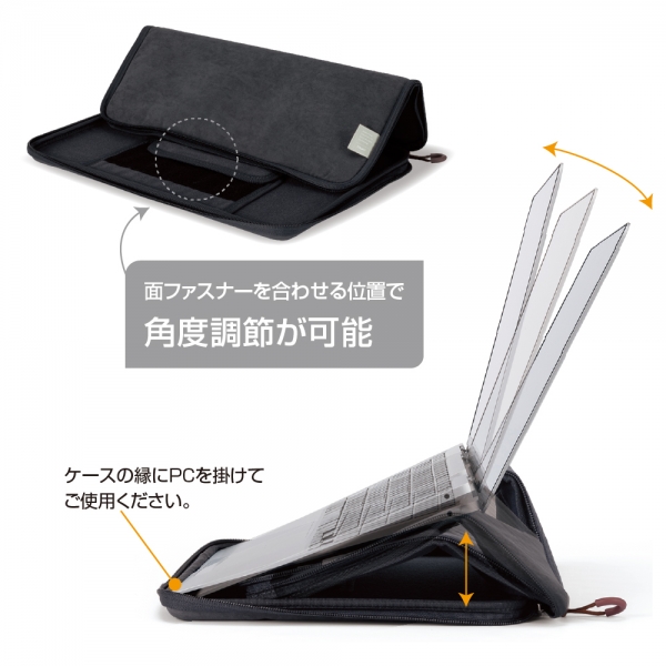 インナーケースとPCスタンドの2役で使用でき、外出時にノートPCを持ち運ぶことの多い社会人や学生に最適です。