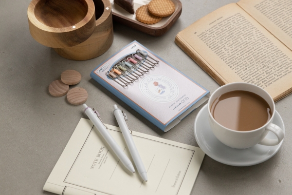 数量限定の7色セットのパッケージは、フィーカとともに楽しむ読書をイメージした、本をかたどったデザインです。