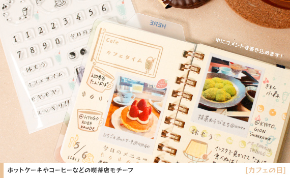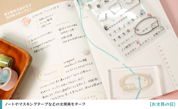 ノートを彩るクリアスタンプのセットは、日付枠やラインのスタンプで手帳やノートを