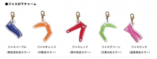 その思いに突き動かされ、いつも仙台の平和を守り、私たちを助けてくれる「文房具戦隊ゴレンジャス」に日頃の感謝をこめて、勤労感謝の日に「ジャスの下チャーム付ボールペン」を発売する事となりました。