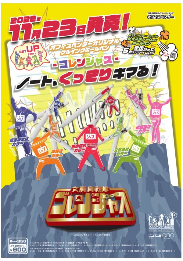 コロナ・戦争・物価高と暗い話が多いですが、上下そろってパワーアップした「文房具戦隊ゴレンジャス」は、お客様に、そして地元仙台に笑顔と元気を届けてくれるはずです。