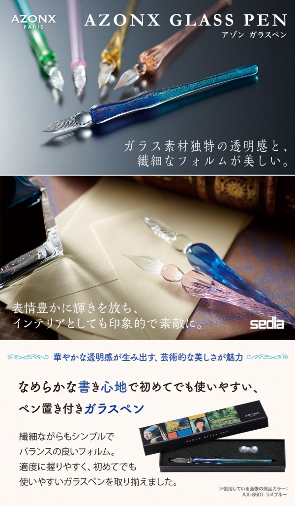 ホーム > 新製品情報・特集 > セキセイ、なめらかな書き心地で初めてでも使いやすい、ペン置き付き「アゾン ガラスペン」4種を発売