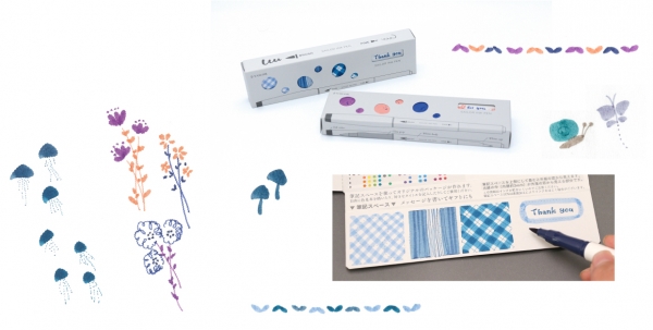 『もっとたくさん、いろんな人に万年筆用ボトルインク「インク工房」を楽しんで貰いたい。』という思いから、「万年筆やつけペンを使わなくても書ける」「ボトルよりも少量で持ち運びもできる」インクのかたちを考えました。マーカー型のボディに、ペン先はふでタイプと細字タイプの両頭仕様のペンです。