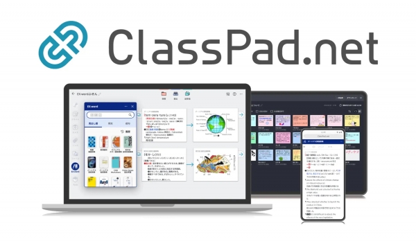 「ClassPad.net」は、当社の電子辞書“EX-word(エクスワード)”より厳選した辞書や学習コンテンツをはじめ、デジタルノート、教員と生徒間のやりとりをサポートする授業支援機能、数学ツールを一つに統合したICT学習アプリです。「GIGAスクール構想」により導入された端末でのICT活用や、生徒の主体的・探求的な学びをサポートします。機能を限定した高校向けのトライアル版は累計600校以上に導入され、今年4月からは小・中学校や大学向けにもサービスを拡充しています。