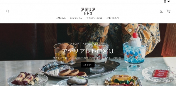 本サイトでは、アデリアレトロの開発に携わったデザイナーが自らコラムを執筆しており、実際に関わった本人だからこそ書ける、他では見られないエピソードをご覧いただけます。また新製品やイベントなど、オフィシャルサイトならではの情報をいち早く入手することができます。同時にアデリアレトロ製品をご購入いただける“お買い物”ページもあり、アデリアレトロのグラスウェアだけでなく文房具や雑貨などアデリアレトロのかわいらしいモチーフを施したコラボアイテムもご購入可能です。(順次アイテム追加予定)