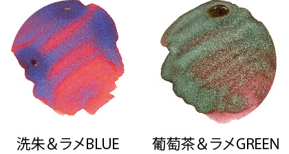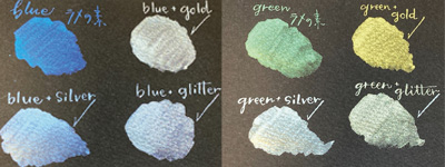 お持ちのインクに混ぜたり、ラメ同士を組み合わせることでインクの楽しみ方がさらに広がります。