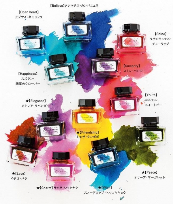 ◆花の色をイメージした12色のインク、うち6色はグリッターまたはゴールドラメ入り