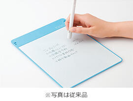 「クリーンノートKaite」は、磁性シートと専用ペンを使用した新しい筆記ツールとして2019年3月に誕生。紙に鉛筆で書くような滑らかな書き心地や、一文字でも自在にオモテから消せる部分消去を実現しながら、消耗品が一切不要で繰り返し使えるユニークな特性がご好評を得ています。多様化するワークスタイルにおいても、日々のメモ書きの必要性から今回メモ用途としての使い勝手を高めた2製品を開発しました。どちらも水に濡れても書いた文字が消えたりにじんだりしません。オフィスやご家庭、飲食店、工場など幅広く活用いただけます。