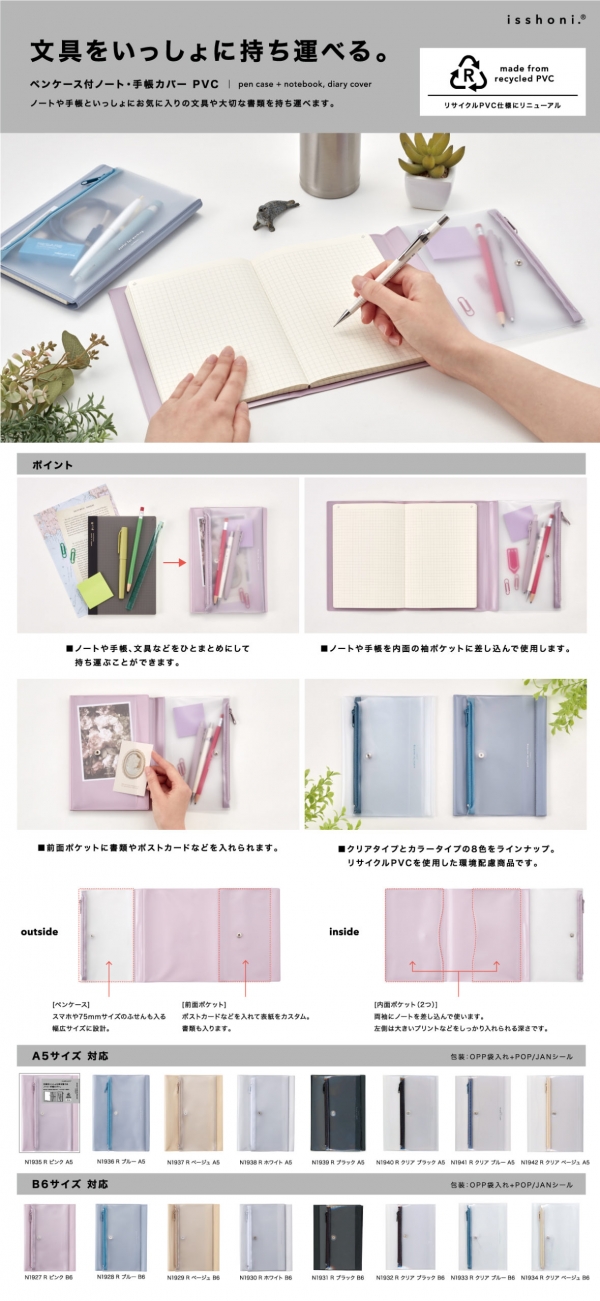 ホーム > 新製品情報・特集 > ダイゴー、isshoni.ペンケース付ノート・手帳カバー リサイクルPVC仕様にリニューアル