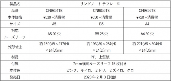 | ■「リングノート テフレーヌ」特長・製品概要 |