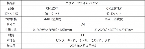 | ■「クリアーファイル パタント」特長・製品概要 |