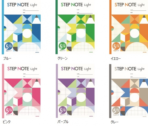 ホーム > 新製品情報・特集 > サクラクレパス、従来品より約20%軽い!学習帳軽量タイプ「STEP NOTE Light」を6色で発売!