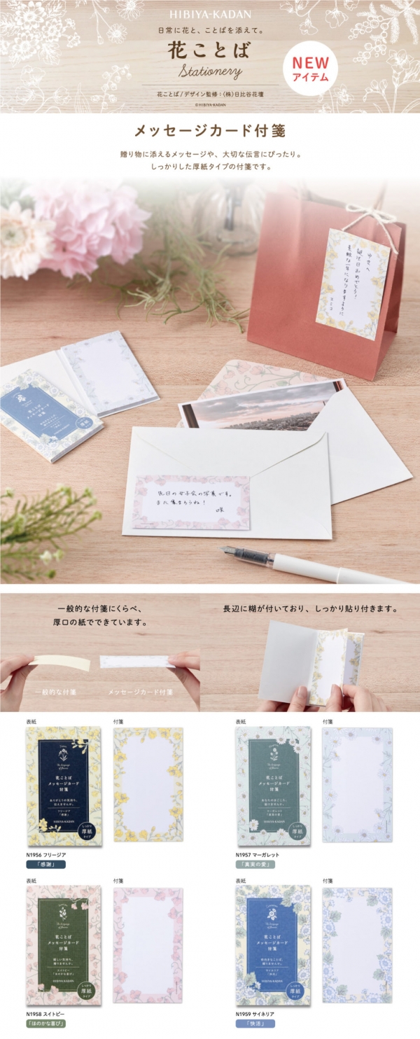 ホーム > 新製品情報・特集 > ダイゴー、日比谷花壇監修「花ことばメッセージカード付箋」発売