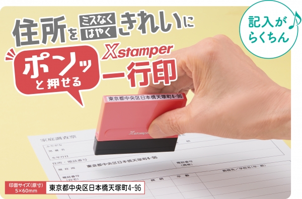 ホーム > 新製品情報・特集 > シヤチハタ、住所をミスなく早くきれいに押せる!「Xスタンパー 一行印 メールオーダー式」発売