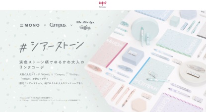 ストーン柄<シアーストーン>は、ノート「Campus(キャンパス)」(コクヨ株式会社)、シャープペンシル「Dr.Grip(ドクターグリップ)」(株式会社パイロットコーポレーション)、消せる筆記具「FRIXION(フリクション)カラーズ」(同)、「FRIXIONライト」(同)の学生に人気のブランドとコラボレーションしています。筆記具とノート、シャープペンシルとマーカーなど、さりげないリンクコーデが楽しめます。4ブランドのコラボレーションは初です。