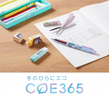 環境教育が浸透し、SDGsの認知率も非常に高いZ世代の学生たち。彼らは文具のメインユーザーであるだけでなく、これからの未来を担う主役です。「COE365」はそんなZ世代をターゲットとしたエコ文具企画として2022年2月にシリーズ第1弾を発売し、大きな反響を得ました。好きな文具を楽しく使いながら、同時にエコにも貢献することができる、新しい環境配慮型製品です。