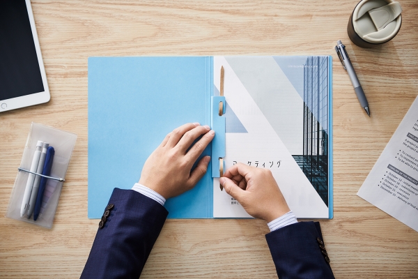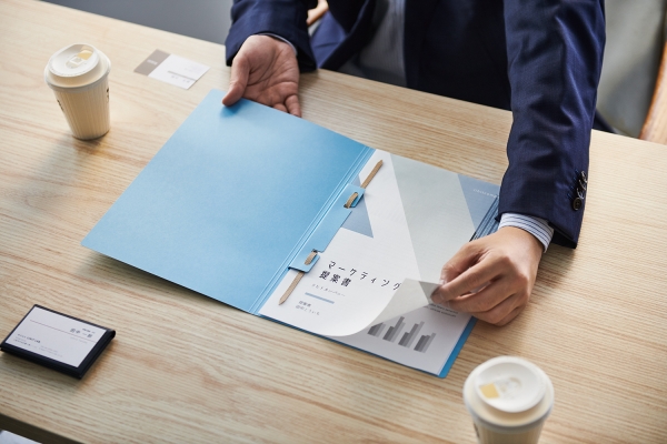 配慮した製品への需要が高まっています。しかし、市場に流通しているファイル製品は金属製やプラスチック製のとじ具を使用した製品が多く、とじ具を含めたすべてのパーツが紙製のファイルは多くありません。