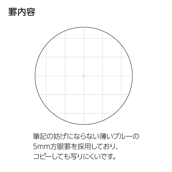 ほどよいガイドになりながらも筆記の妨げにならず、コピーをしても写りにくい薄いブルーの5mm方眼罫を採用しています。コピー用紙を筆記用紙として使用するワーカーにおすすめです。