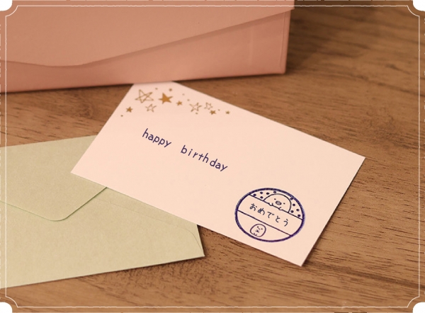 他にもおすすめの使い方として、プレゼントに添えるカードに押して頂いたり、手づくりお菓子や小分け保存の食品などへ賞味期限を忘れないようシールに押しておき貼るなどがあります。