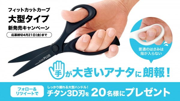 プラス公式ツイッターアカウント(@plus_bungu)にて、抽選で20名様に「フィットカットカーブ 大型タイプ チタン3D刃」をプレゼントするキャンペーンを実施します。