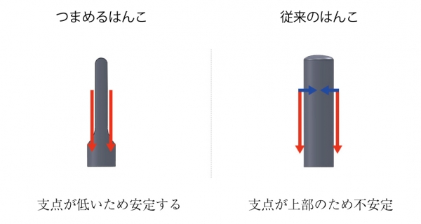 円柱と比較して、傾斜のある形状から、下方向への力がかけやすくなっています。また支点が下がったことにより、安定して押すことができます。
