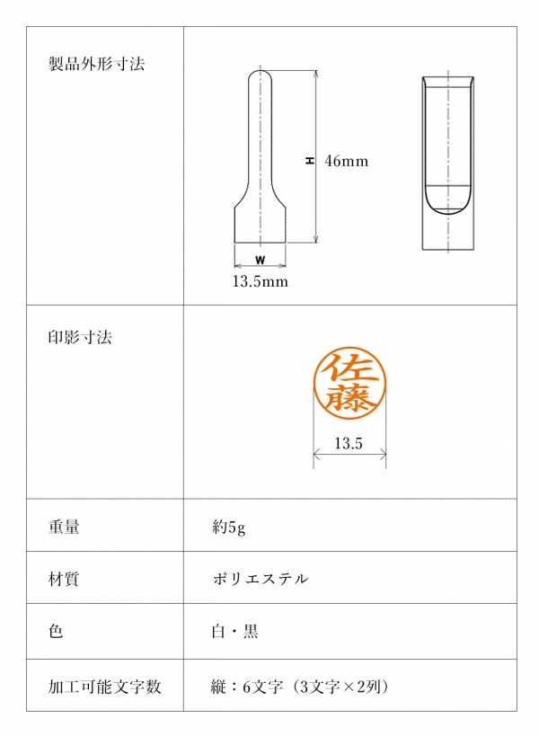 形状から方向が分かりやすく、持ちながらでもハンコの傾きが確認しやすくなっています。ご注文時には縦向き、横向きどちらで印面を加工するか選択することができます。