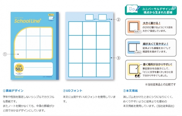 子ども発達支援に役立つ教材・教具を販売している【できるびよりオンラインショップ】にて、『合理的配慮のためのノート』の取扱販売を開始しました。ユニバーサルデザインの視点から生まれた罫線で、見やすく、大きく書けるノートです。