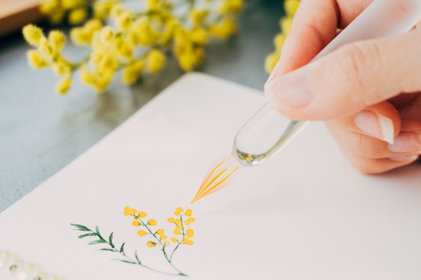 ガラスが体温に近付くことで"一体感"が生まれ、感じるままに手を動かすことができる新感覚のガラスペンです。