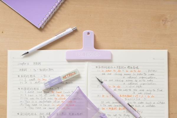 それを受け、2018年の夏にシャープペンシル・消しゴム・替芯の3つのアイテムに”レトロポップ“なデザインを採用し、筆記具のトータルコーディネートができる学生向け筆記具ブランド「レトリコ」を立ち上げました。そしてこの度、今年のトレンドカラーとしてあげられている、くすみを含んだ落ち着いた色味で、目立ちすぎずに自分を表現するミュートカラーのシャープペンシルを6色(0.3㎜、0.5㎜ 各3色)と、消しゴム3色、そしてシリーズ初となるブッククリップ3色を数量限定で拡充いたします。
