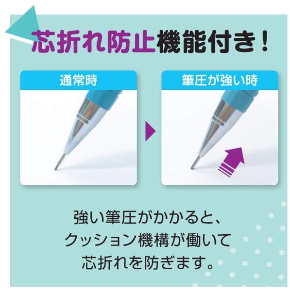 3.強い筆圧の場合でも、先端にクッション機構が働き、芯折れ防止に!