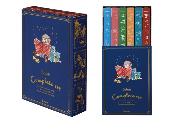また、童話6作品すべてをセットにした『ジュース 童話シリーズ コンプリートセット』(価格:2,200円(税抜価格:2,000円))を数量限定で同時発売します。3色セットを本棚に収納したように見える引き出し型の専用ケース付きで、自分使いはもちろん、ギフトにも最適です。