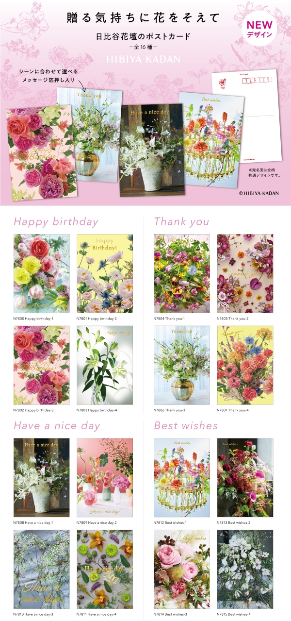 ダイゴー株式会社は、花のプロフェッショナル日比谷花壇監修のポストカードを発売いたします。