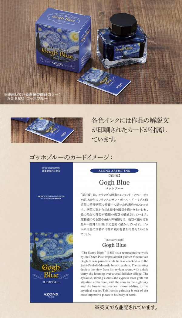 ●アゾン アーティストインクは、有名画家の代表作からイメージした色彩を表現したインクシリーズ。