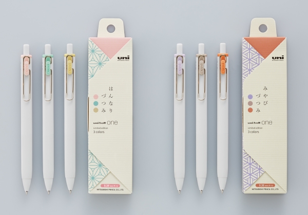 ホーム > 新製品情報・特集 > 三菱鉛筆『ユニボール ワン 和テイストカラー』はんなりづつみ/みやびづつみ 数量限定発売