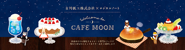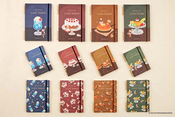 古川紙工株式会社の新柄「カフェムーンシリーズ」のイラストを採用した「スイング・ロジカルWリングノート」