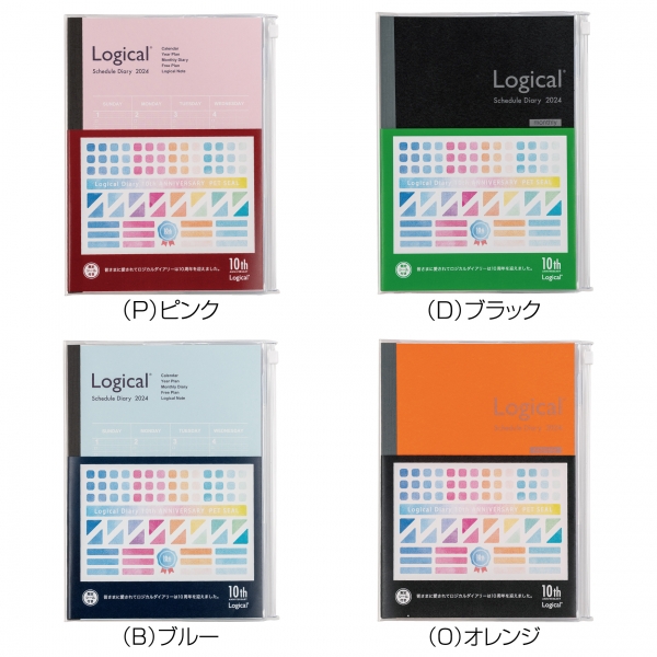 2024年版は、「ロジカルノートダイアリー」発売10周年を記念したアニバーサリーシリーズです。カバーポケットにはがきサイズのPETシールも付属した「ロジカルダイアリー 10周年限定カバーポケットタイプ A5」や月間・週間の2冊のダイアリーを一つにまとめて持ち歩ける「ロジカルダイアリー 10周年限定2冊カバータイプ A5」など、10周年限定アイテムや新たな製品をラインアップし、計92品番を展開しています。