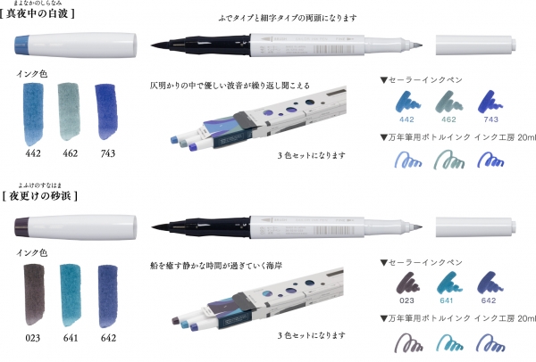 品名:セーラーインクペン 3 色セット 真夜中の白波、夜更けの砂浜