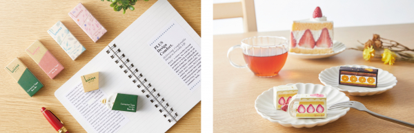 デザインは、グリーン、ピンク、ボタニカルグリーン、ブルームピンクの定番4 種類に加え、限定デザインとしてイチゴショートケーキ、ショコラオレンジの2種類を発売します。箱型形状のコンパクトサイズで、使い切りタイプ。メーカー希望小売価格(税込)は275円です。