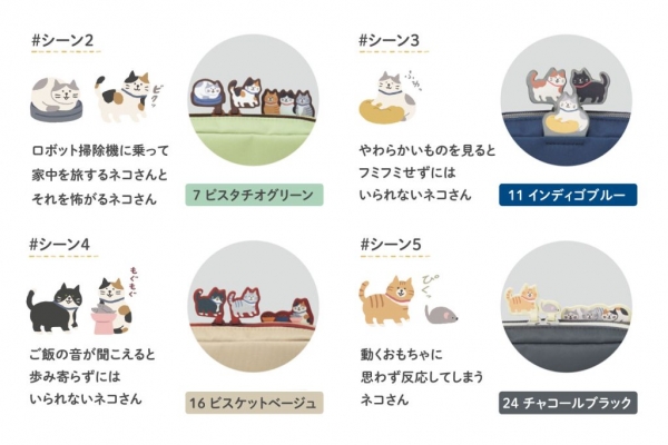 ※上記の4製品は本体カラーごとに#シーン2から#シーン5のにゃんシーンを表現したファスナートップが付属しています。