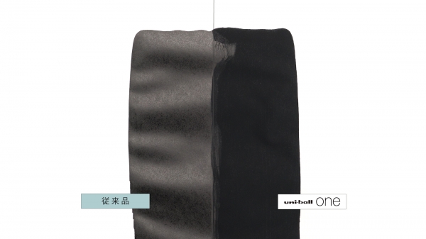 『uni-ball one』のインクは、一般的なゲルインクと異なり、色材の紙繊維への浸透を極力抑える、新しい顔料を使用しています。
