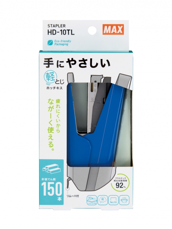 ・「可変倍力機構」を搭載しており、書類を軽くとじることに加え、従来の倍力構造で「HD-10TL」を作った場合に比べて全高を23%ダウンし、機能性を維持しながらも握りやすいホッチキスです。