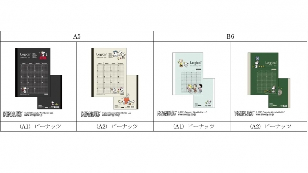 コミック「ピーナッツ」より人気キャラクター “スヌーピー”と“ピーナッツ・ギャング”のキャラクターアートを採用しました。A5サイズはフライング・エースに扮したスヌーピーがクールなデザインと、スヌーピーのきょうだいたちが勢ぞろいした賑やかなデザインの2種。B6サイズはアイスを持って歩くキャラクター達がかわいらしいデザインと、2024年に登場50周年を迎える「ビーグル・スカウト」デザイン2種の計4品番です。