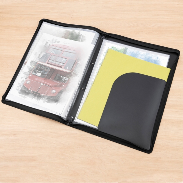 ・ 作品ポケットに一枚ずつ収納できるため、内部に仕切りが無い一般的な収納ケースに比べ作品をしっかり保護できる。