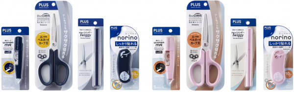 ラインアップとして、修正テープ「ホワイパーミニローラー」、テープのり「ノリノポッド」、家庭用はさみ「フィットカットカーブ」、携帯はさみ「ツイッギー」の4アイテムをセレクト。