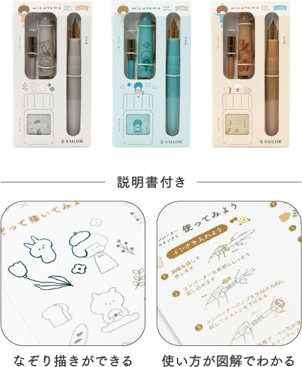 万年筆が初めての方でもこのセット1 つですぐに使い始められます。