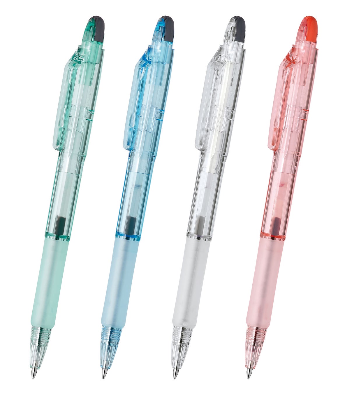 ボディ色・インク色(左から):オーシャンブルーグリーン(黒)、アースブルー(黒)、ウォータークリアー(黒)、サンライズコーラル(赤)